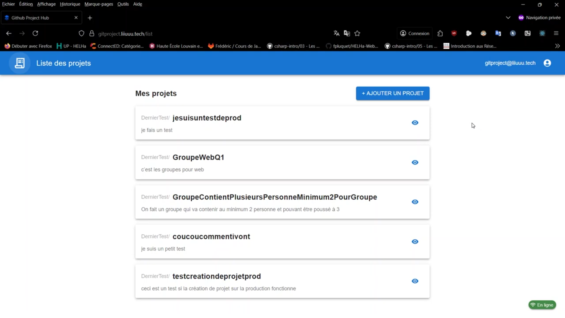 Dans le cadre du cours de Web B3, nous avons réalisé un gestionnaire de projet GitHub pour que les étudiants puissent s'inscrire aux différents projet que les proffesseurs crée pour eux.